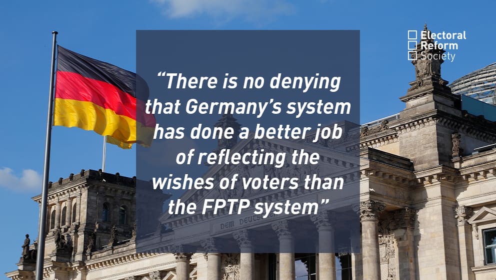 Since the Federal election of 1953, the second post-World War II election held in the Federal Republic of Germany, a Mixed Member Proportional (MMP) electoral system has been used for German Federal elections. In the UK, we describe this electoral system as the Additional Member System (AMS).